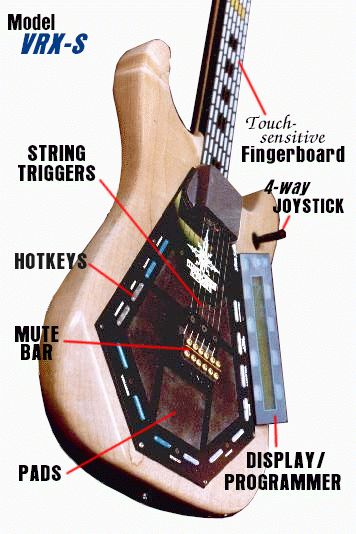 The Starr Labs ‘Ztar’ is a guitar-like controller for MIDI musical synthesizers. Unlike devices which attempt to derive a MIDI control stream from the audio output of a conventional guitar, the Ztar is a fully digital instrument with an internal microprocessor and sensors for frets and strings.